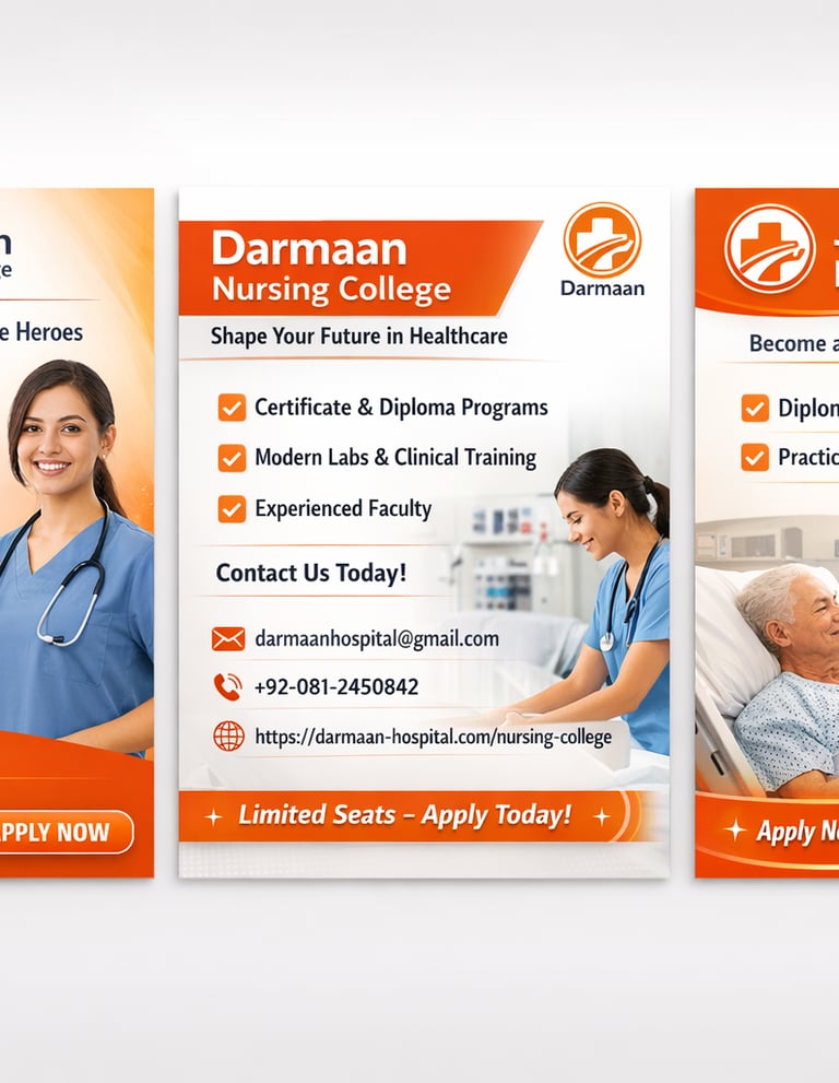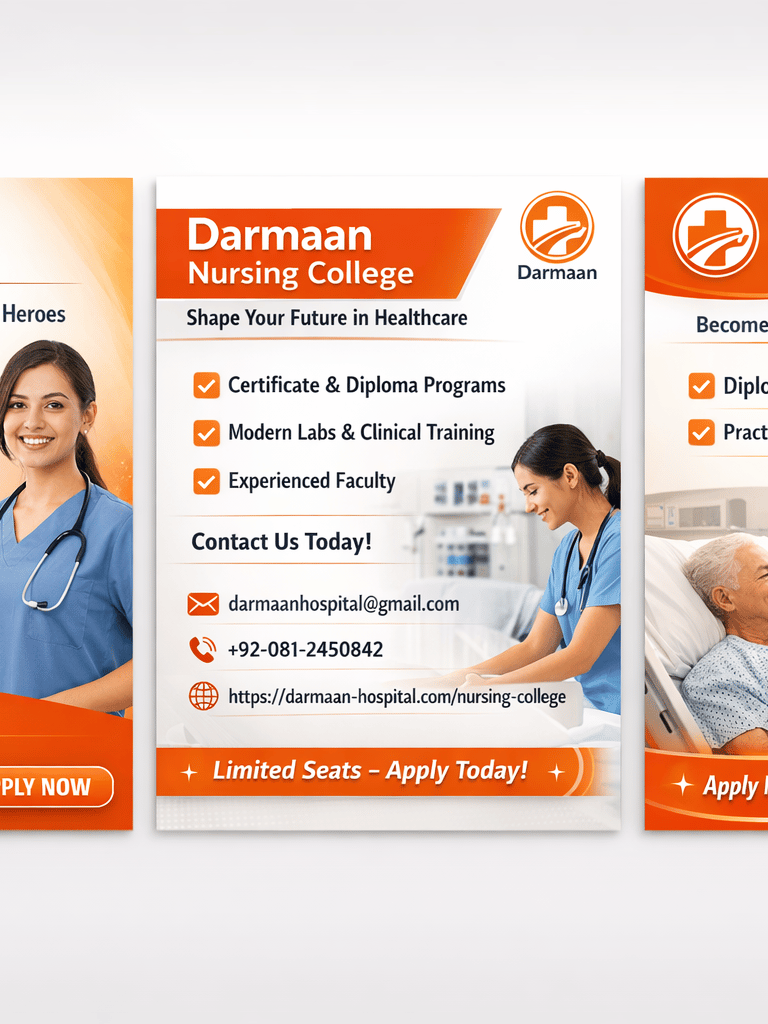 Darmaan Nursing College, Quetta, serves as a gateway to a respected and future-ready career in healthcare, offering a combination of quality education and real-world clinical exposure. The college offers recognized nursing and allied health programs, including general nursing, midwifery, and specialized diploma courses, designed with structured durations ranging from 2 to 4 years, aligned with national standards. Open to both female and male students, Darmaan Nursing College offers an inclusive, safe, and professional learning environment that empowers young people to equip themselves with modern medical knowledge, ethical practice, and hands-on skills. What sets Darmaan apart is its commitment to practice-based learning; every student is given full-time practical exposure alongside their studies, ensuring continuous clinical training within the Darmaan Hospital system. This unique blend of classroom learning and daily hospital practice prepares graduates to confidently serve in hospitals, clinics, and community health settings across Balochistan and beyond.